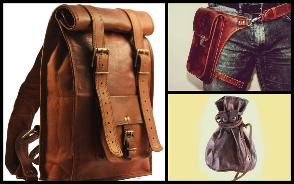Taehyung's backpack, his thigh bag, and the "lost" leather pouch